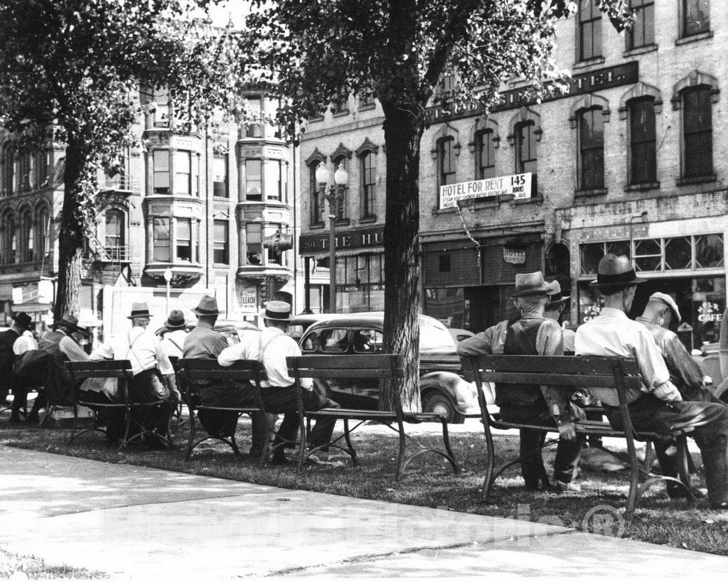 • .Historic Black & White Photo - Minneapolis, Minnesota - Sitting in the Gateway District, c1939 -