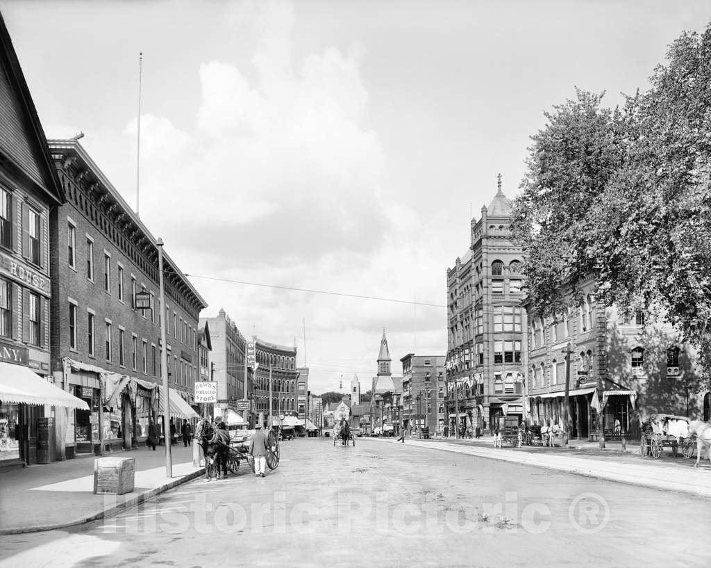 • Historic Black & White Photo - Nashua, New Hampshire - Looking Down Main Street, Nashua, c1908 -