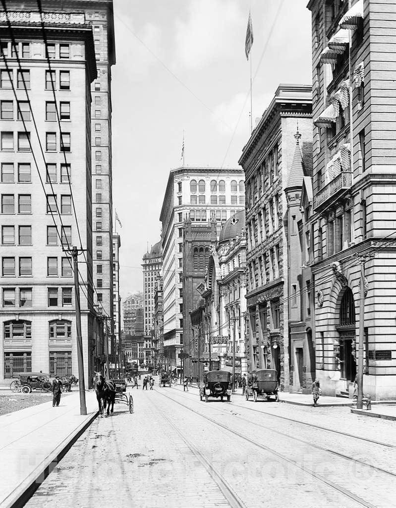 Historic Black & White Photo - Pittsburgh, Pennsylvania - Looking Down Sixth Avenue, c1915 -