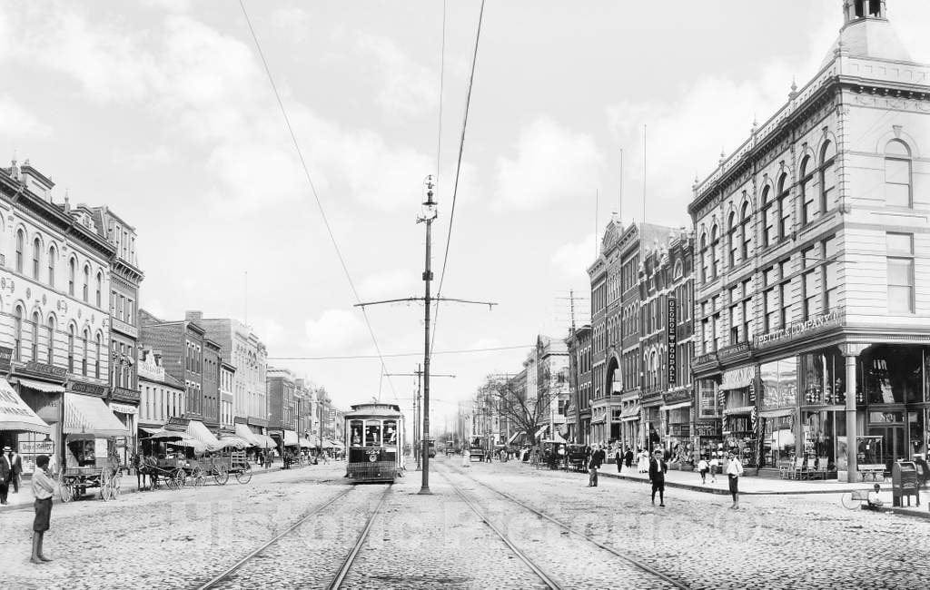 Historic Black & White Photo - Richmond, Virginia - Looking Up Broad Street, c1908 -