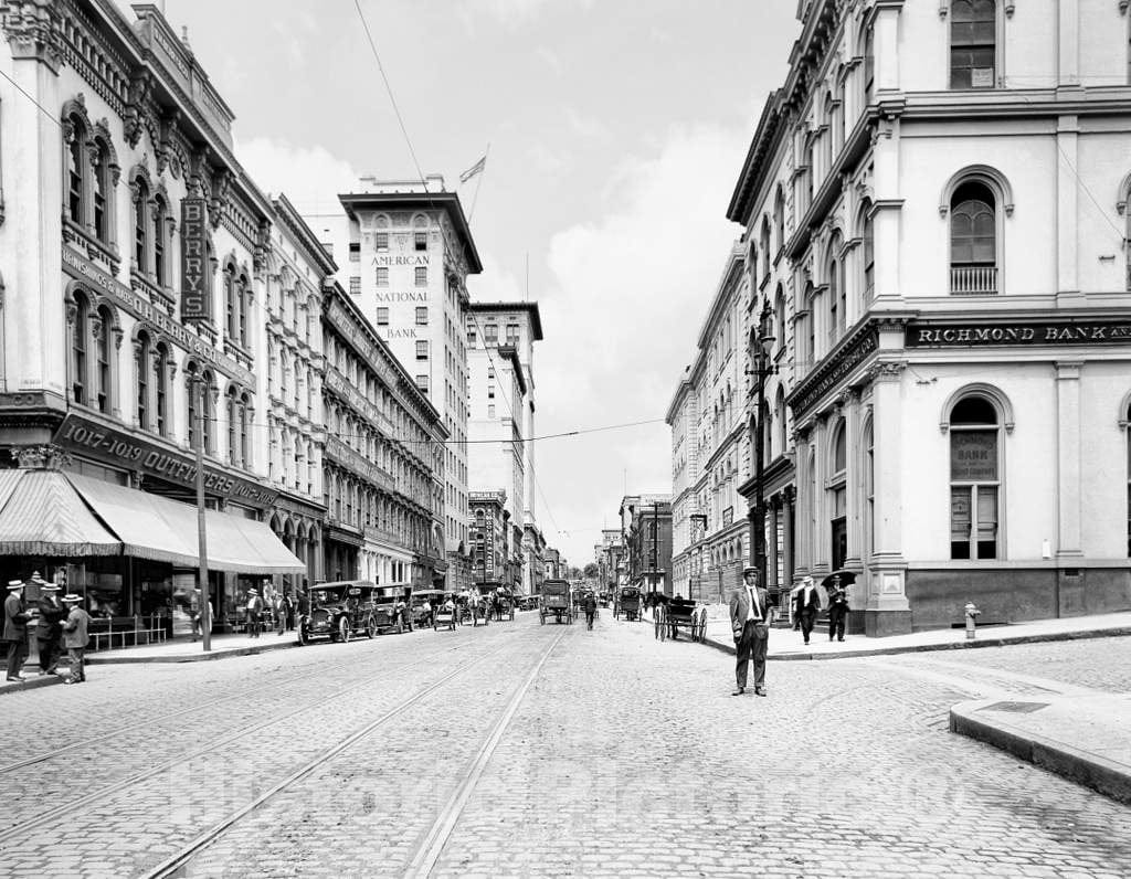Historic Black & White Photo - Richmond, Virginia - Looking West on Main Street, c1915 -