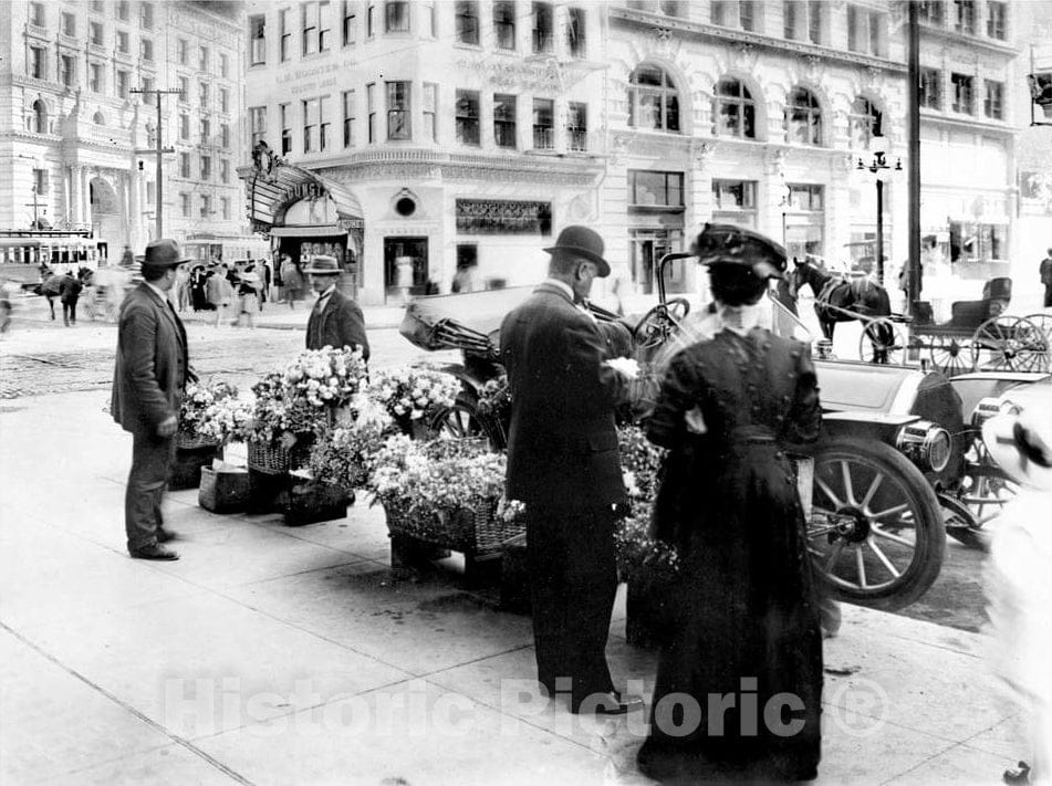 Historic Black & White Photo - San Francisco, California - Vending Flowers on Market Street, c1910 -