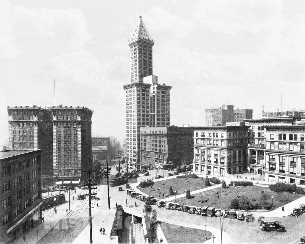 Historic Black & White Photo - Seattle, Washington - City Hall Park, c1925 -