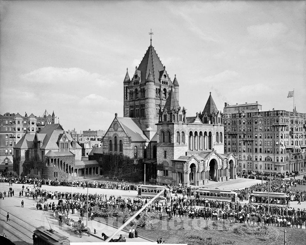Boston Historic Black & White Photo, Crowd Gathered at Trinity Church, c1903 -