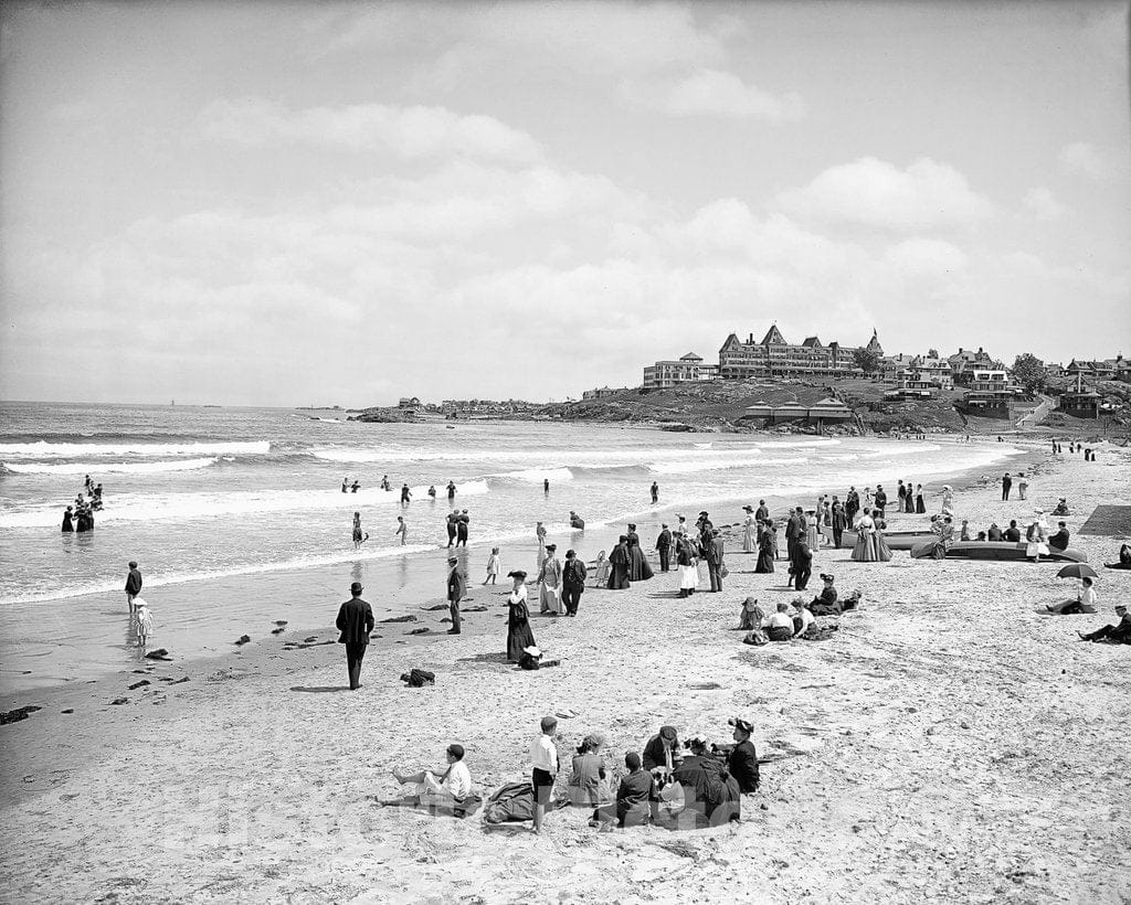 • Boston Historic Black & White Photo, The Shoreline at Nantasket Beach, c1905 -
