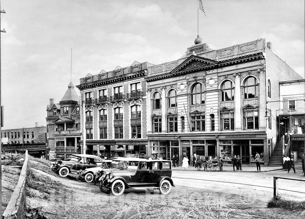 Connecticut Historic Black & White Photo, Outside the Town Building, Bristol, c1915 -