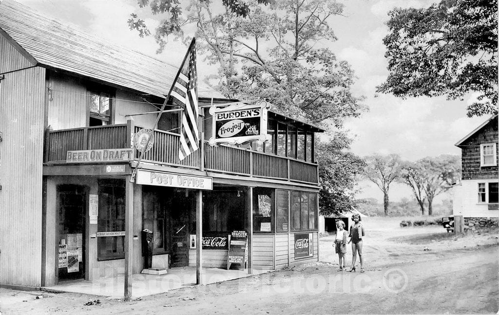 Connecticut Historic Black & White Photo, Waiting Outside the General Store, Grove Beach, c1935 -
