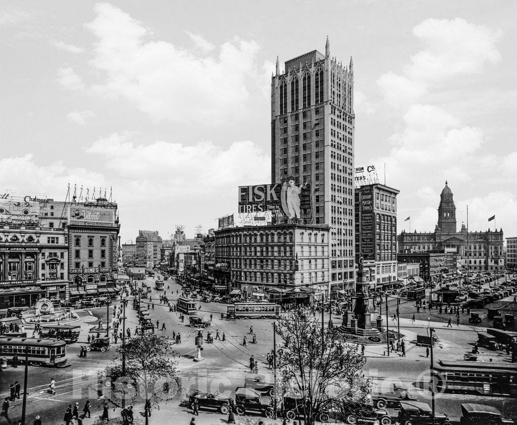 Detroit Historic Black & White Photo, Campus Martius, c1920 -