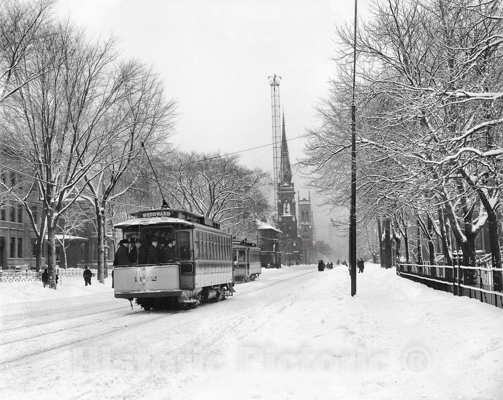 Detroit Historic Black & White Photo, Woodward Avenue in Winter, c1904 -