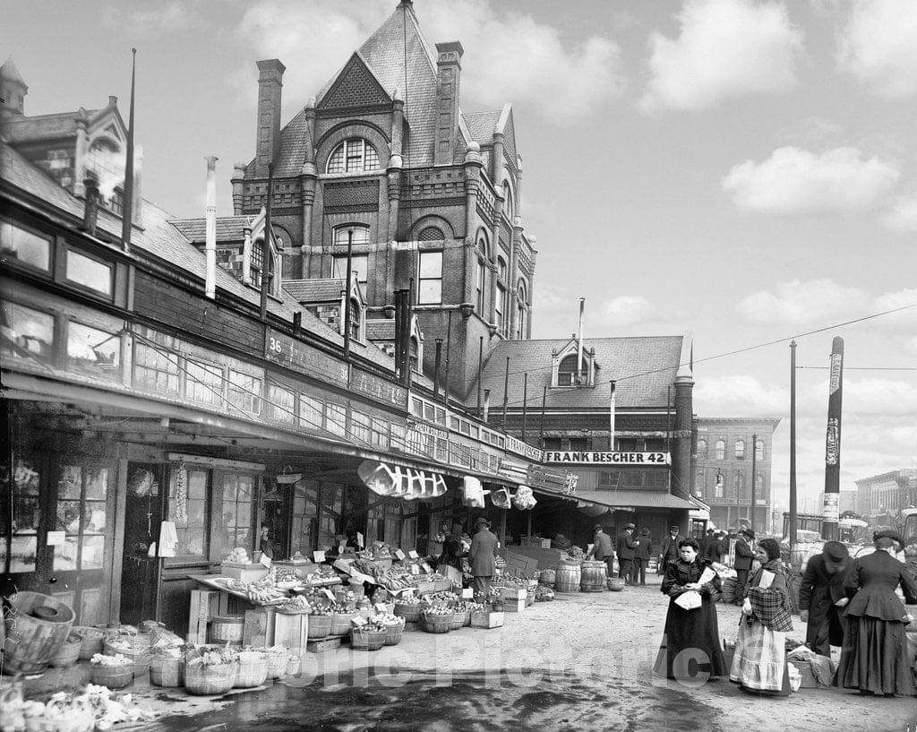 Kansas City Historic Black & White Photo, City Market, c1906 -