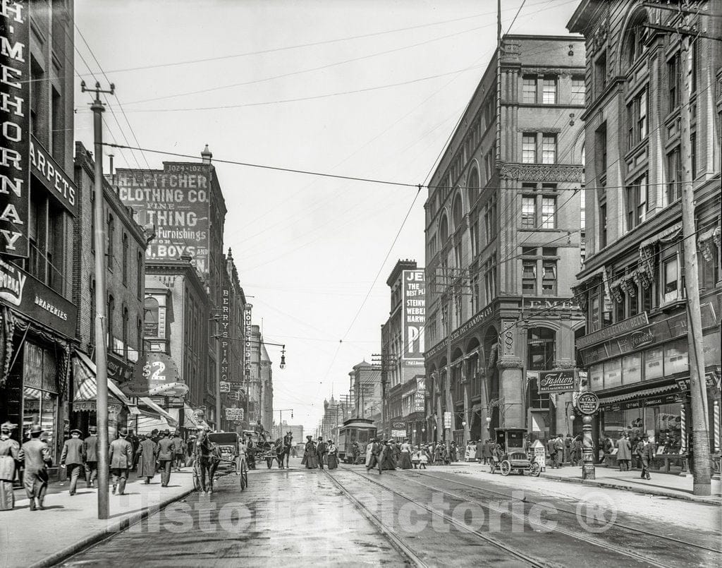 Kansas City Historic Black & White Photo, Walnut Street, c1906 -