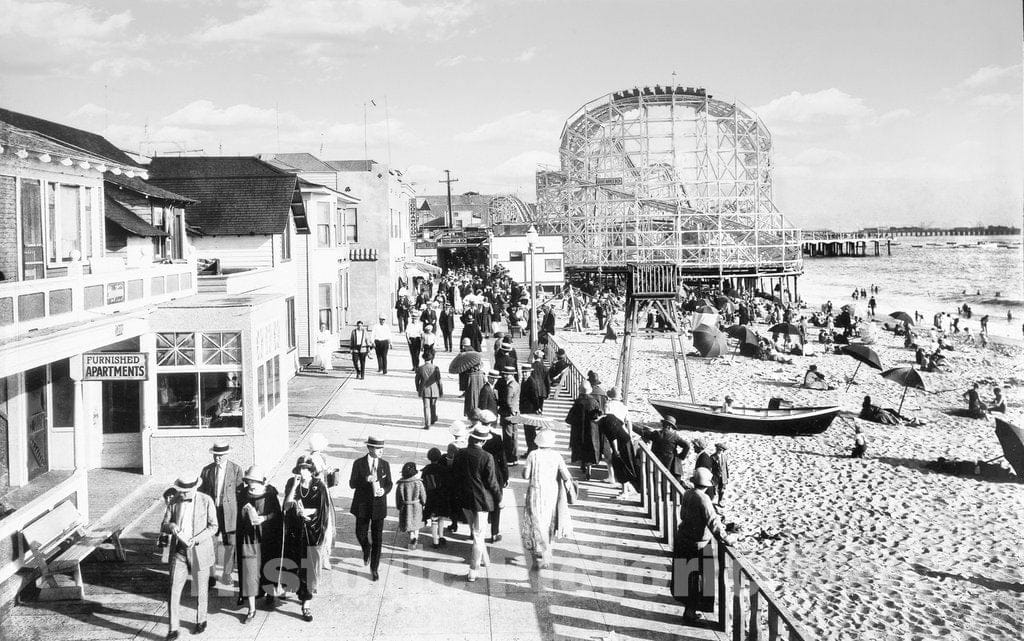 Los Angeles Historic Black & White Photo, The Concrete Boardwalk in Redondo Beach, c1920 -