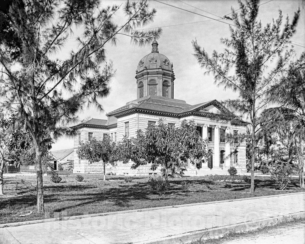 Miami Historic Black & White Photo, The Dade County Court House, c1907 -