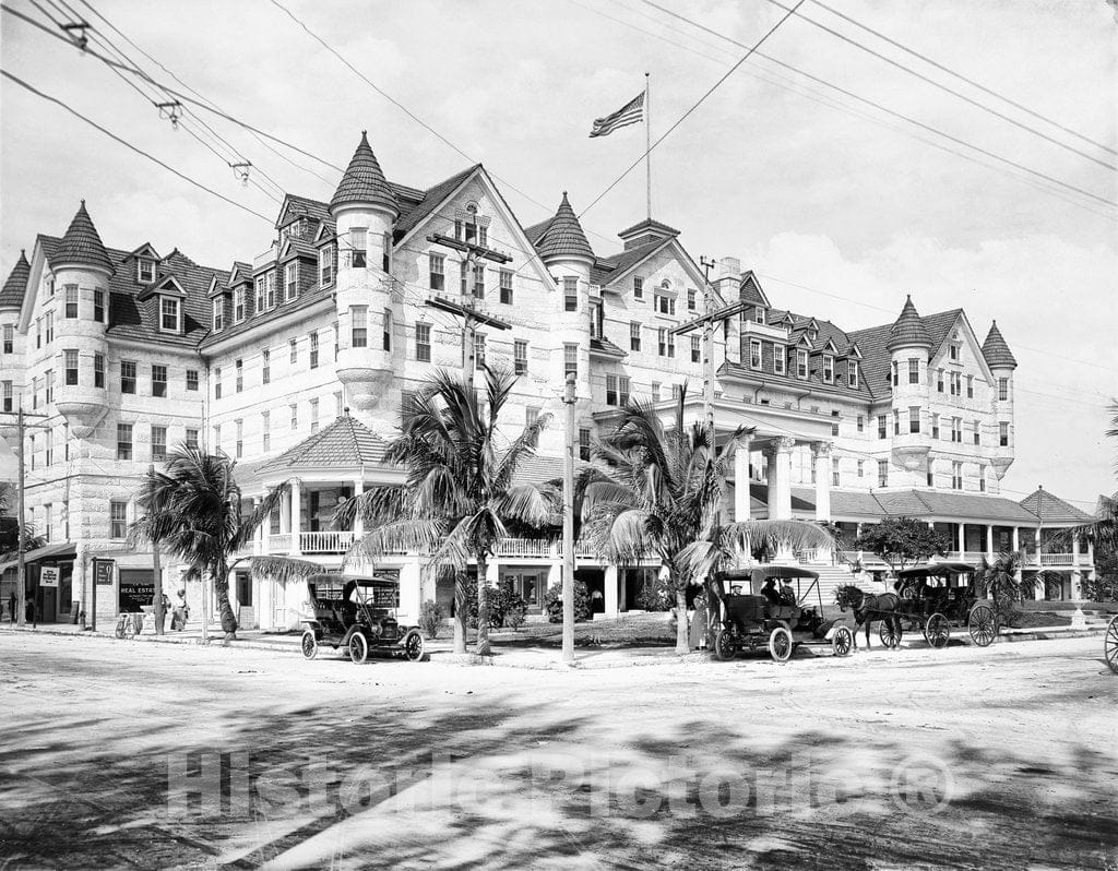 Miami Historic Black & White Photo, The Halcyon Hotel at E. Flagler Street & Second Avenue, c1915 -