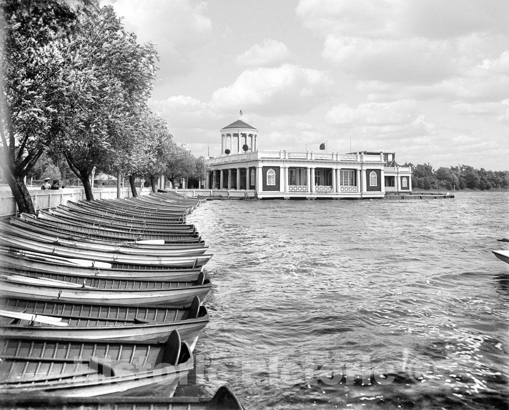 Minneapolis Historic Black & White Photo, Boat Landing, Lake Harriet, c1903 -