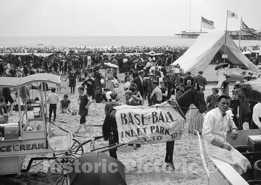 New Jersey Historic Black & White Photo, On the Beach, Atlantic City, c1903 -