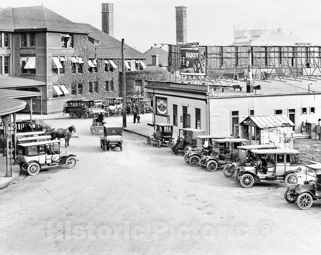 Portland Historic Black & White Photo, Parking in Front of Union Station, c1913 -