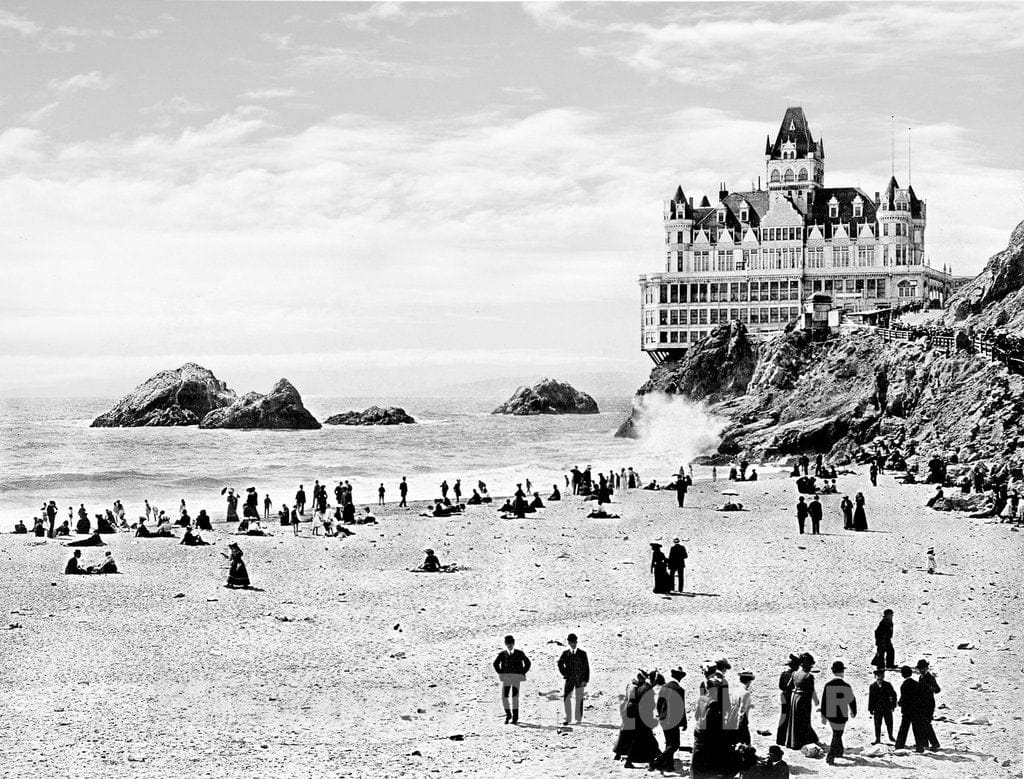 San Francisco Historic Black & White Photo, The Cliff House Overlooking Ocean Beach, c1902 -