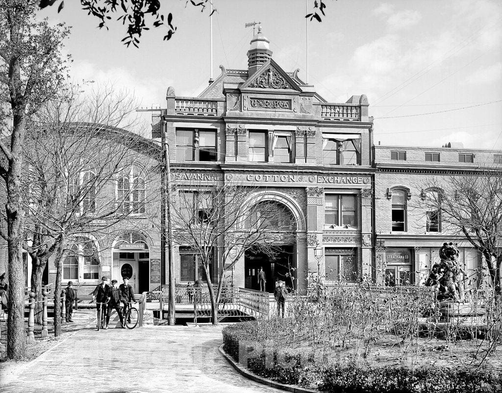 Savannah Historic Black & White Photo, Outside the Savannah Cotton Exchange, c1904 -