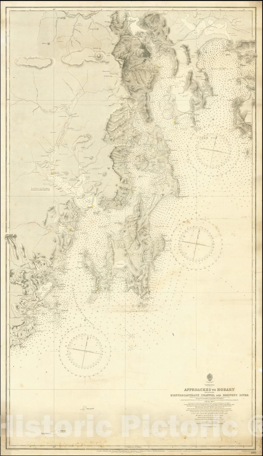 • Historic Map : Approaches to Hobart including D'Entrecasteaux Channel and Derwent River, surveyed by Lieutenant A.M. Field R.N. et al.,1889 (1912), Vintage Wall Art
