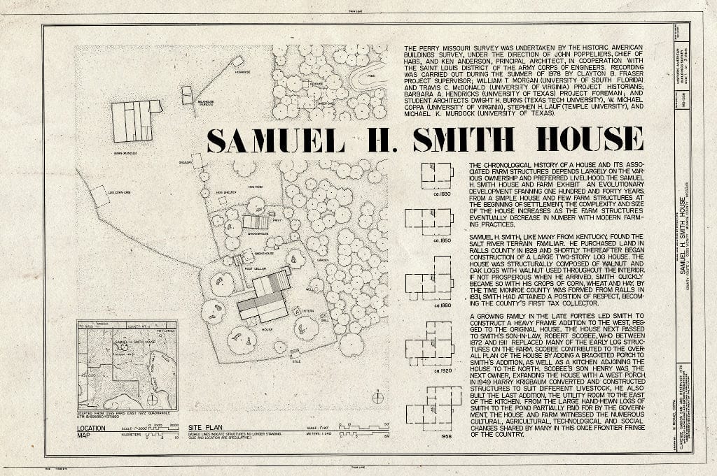 Blueprint Title Sheet with Location map and site Plan - Samuel H. Smith House, Salt River Vicinity, Goss, Monroe County, MO