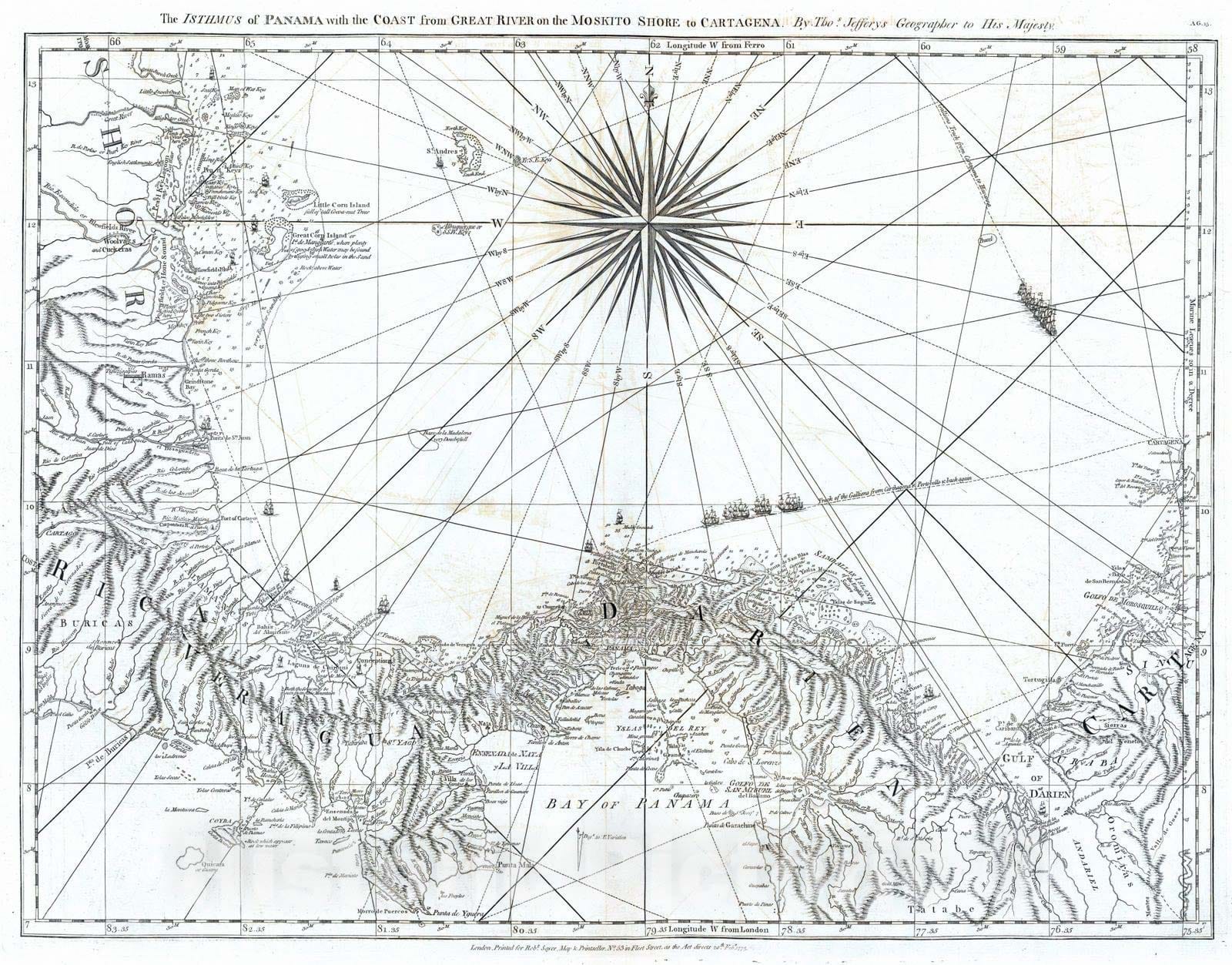 Historic Map : 1775 The Isthmus of Panama with the coast from Great River on the Moskito Shore to Cartagena. - Vintage Wall Art