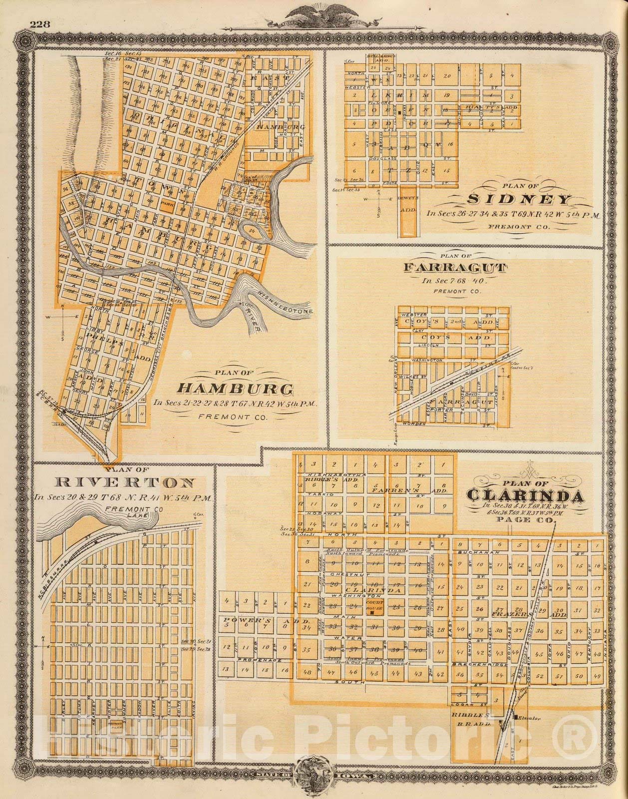 1875 Plans of Hamburg, Sidney, Farragut, Riverton and Clarinda, Iowa.