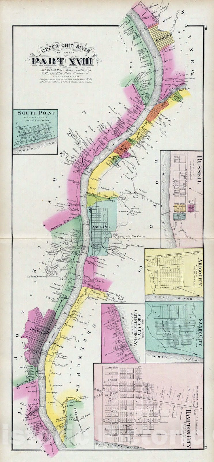 Historic Map : 1877 Upper Ohio River and Valley part XVII, (with) South Point, Ohio, Russell, Arigo City, Sandy City, Hampton City, Ky. v2