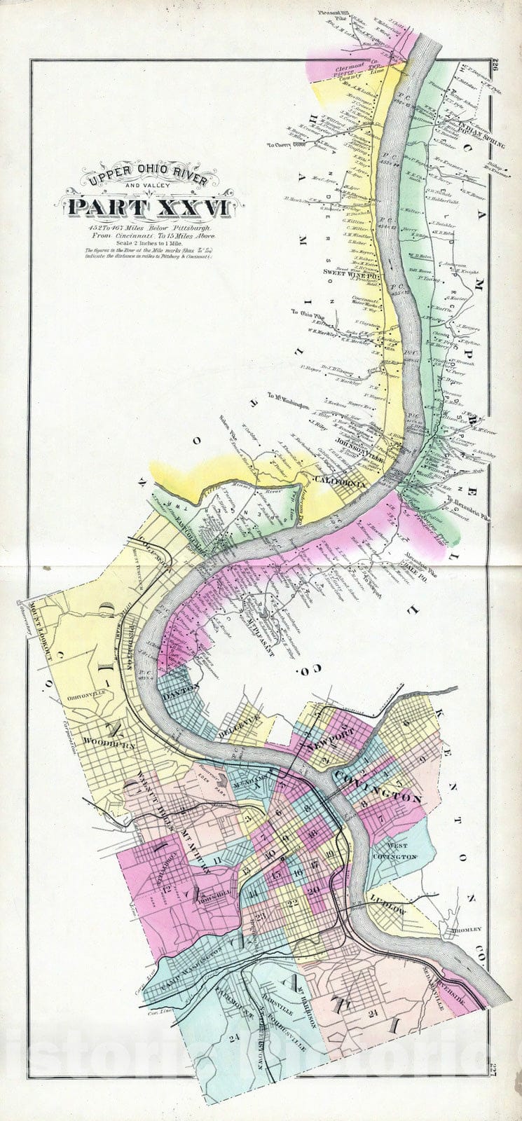 Historic Map : 1877 Upper Ohio River and Valley part XXVI, 452 to 467 miles below Pittsburgh, from Cincinnati to 15 miles above. - Vintage Wall Art