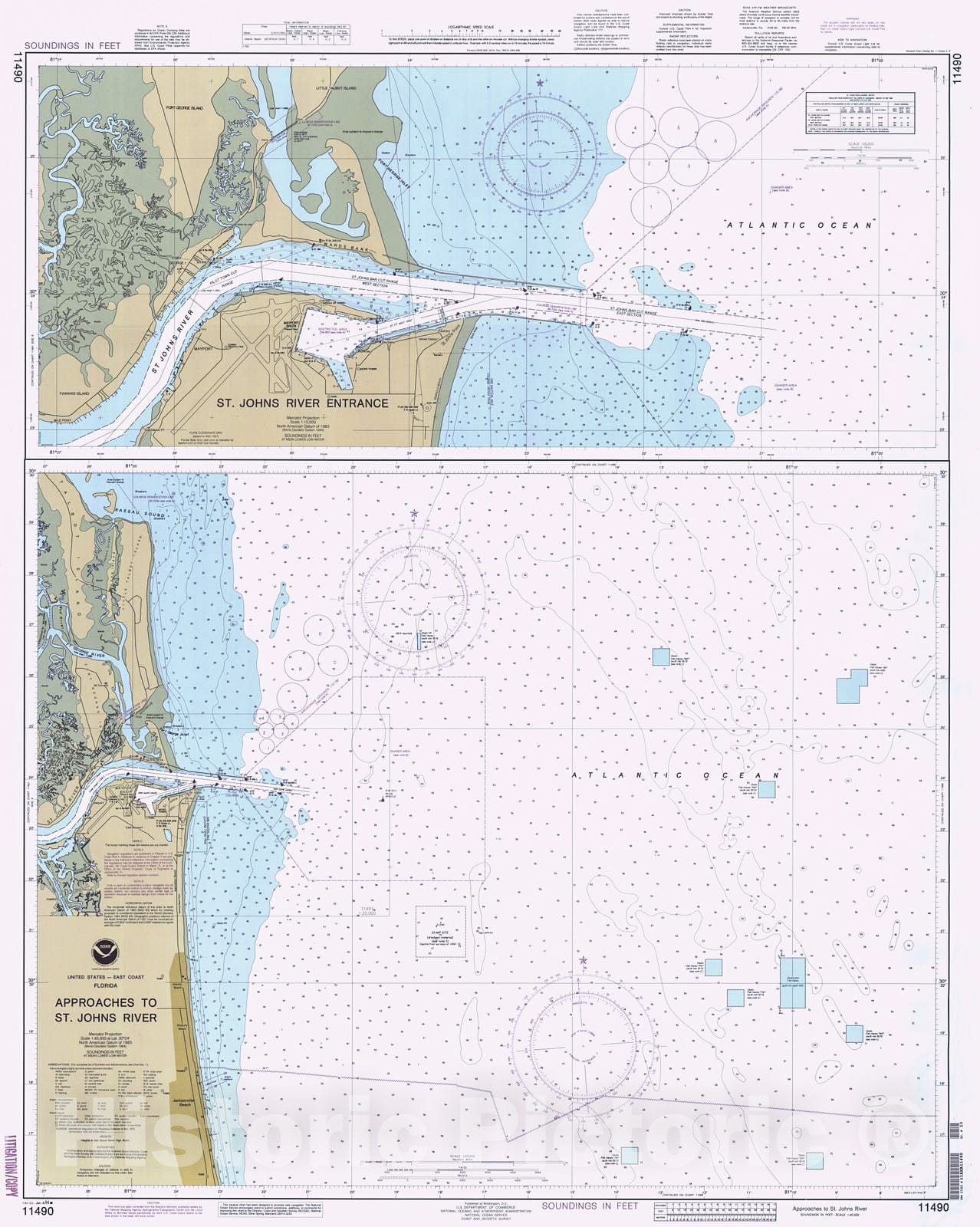 Historic Historic Nautical Map - Approaches To St Johns River, 1994 NOAA Chart - Florida (FL) - Antique Vintage Decor Poster Wall Art Reproduction