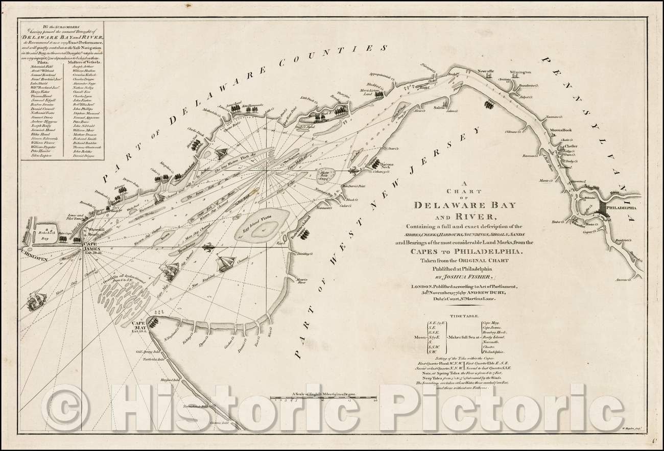 A Chart of Delaware Bay and River, Containing a full and exact description of the Shores, Creeks, Harbours, Soundings, Shoals, Sands, 1776