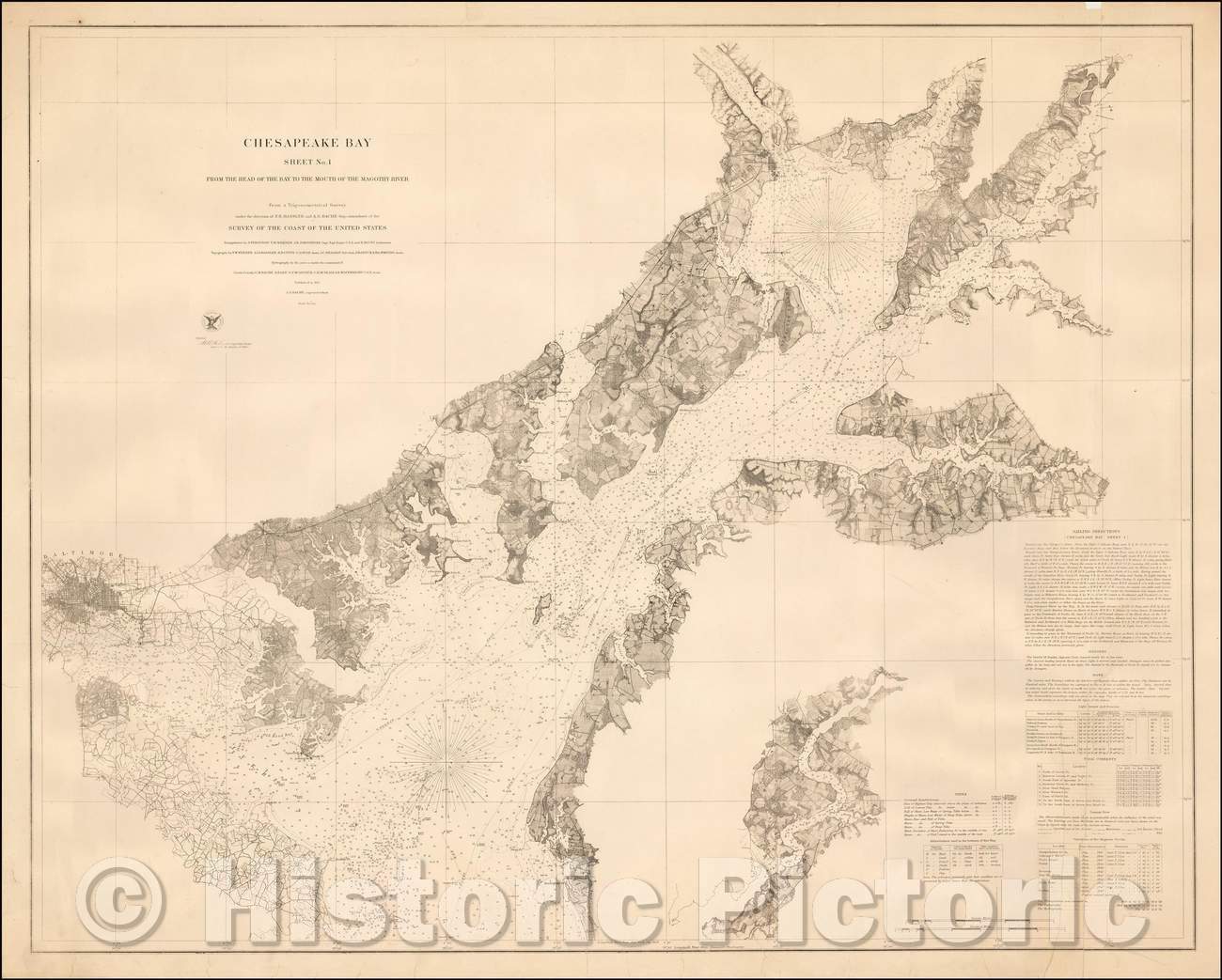 • .Historic Map - Chesapeake Bay Sheet No. 1 From The Head of the Bay To The Mouth of the Magothy River, 1857, United States Coast Survey - Vintage Wall Art
