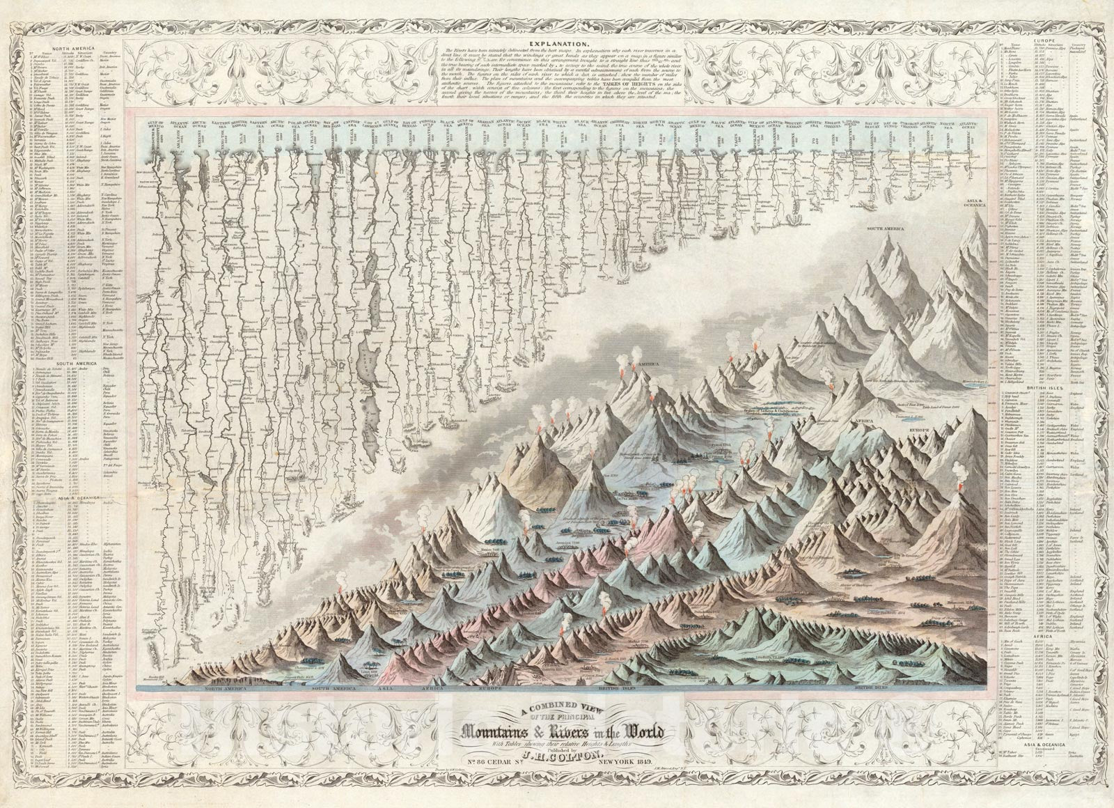 A combined view of the principal mountains & rivers in the world : with tables showing their relative heights & lengths. Published by J.H. Colton. No. 86 Cedar St. New York 1849. Drawn by G.W. Colton. J.M. Atwood, Engr. N.Y. | A combined view of the principal mountains & rivers in the world : with tables showing their relative heights & lengths. Published by J.H. Colton. No. 86 Cedar St. New York 1849. Drawn by G.W. Colton. J.M. Atwood, Engr. N.Y. | See note field above.