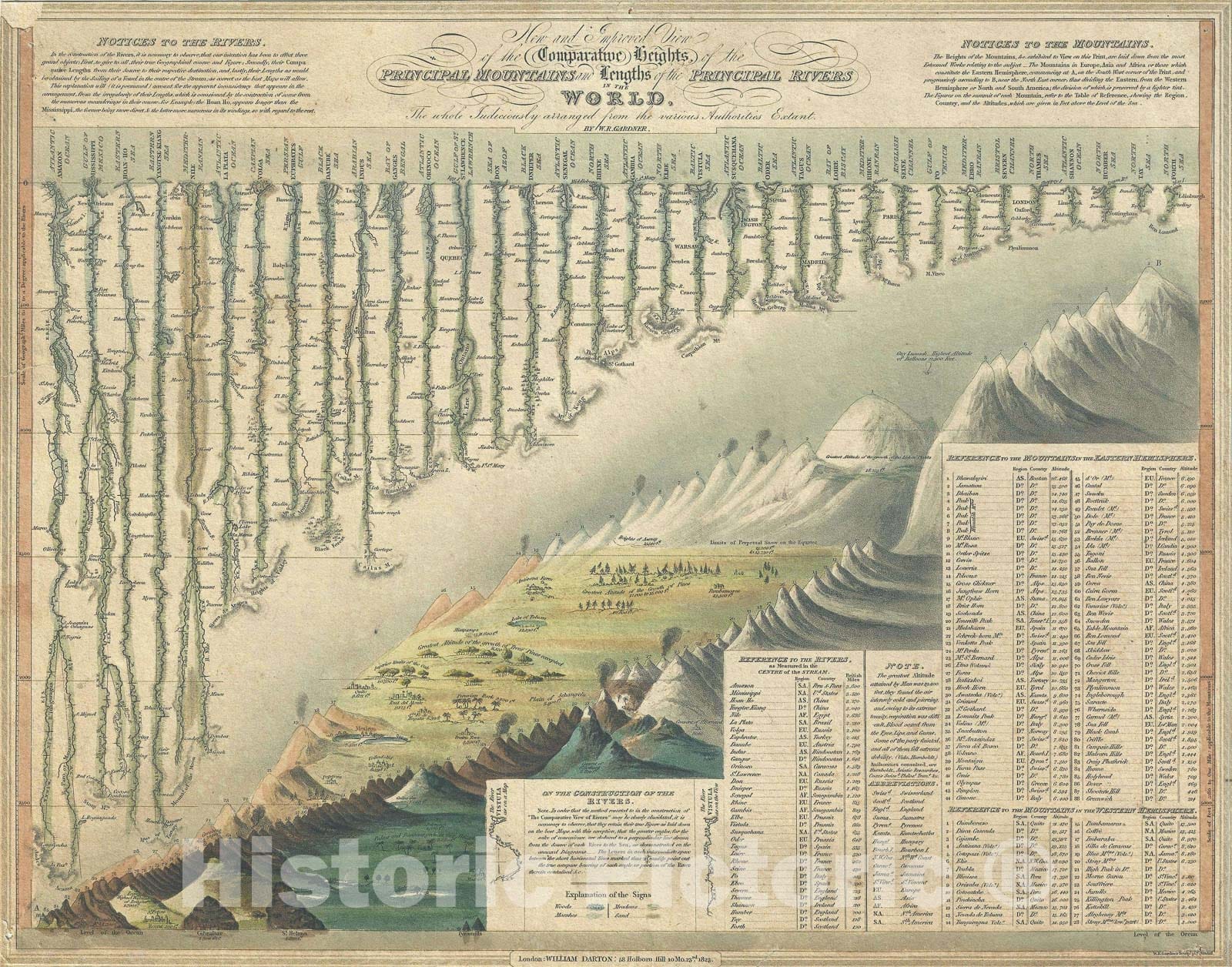 • .Historic Map : Comparative Chart of World Mountains and Rivers, Darton and Gardner, 1823, Vintage Wall Art