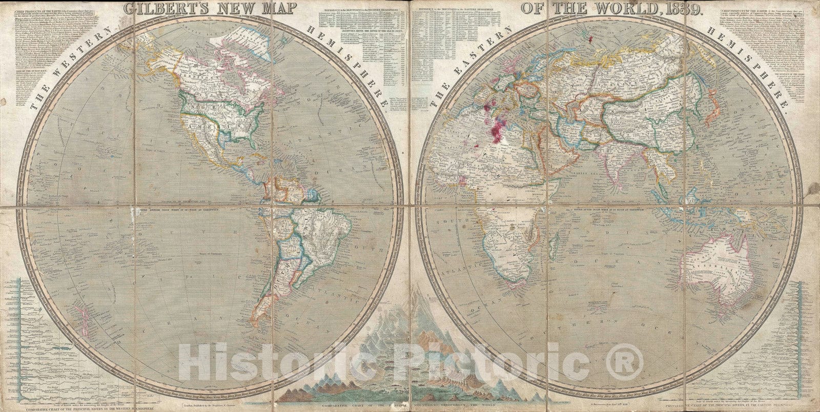 Historic Map : Comparative Mountains Rivers, Republic of Texas, Gilbert World, 1839, Vintage Wall Art