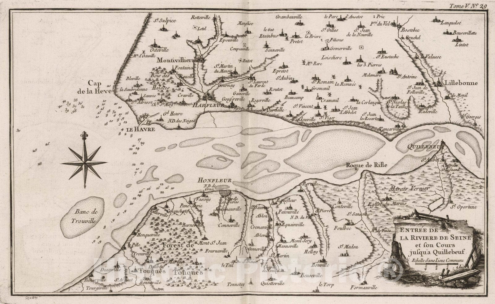 France, Seine River , France 1764 Entree de la riviere de Seine et son cours jusqu'a Quillebeuf. , Vintage Wall Art