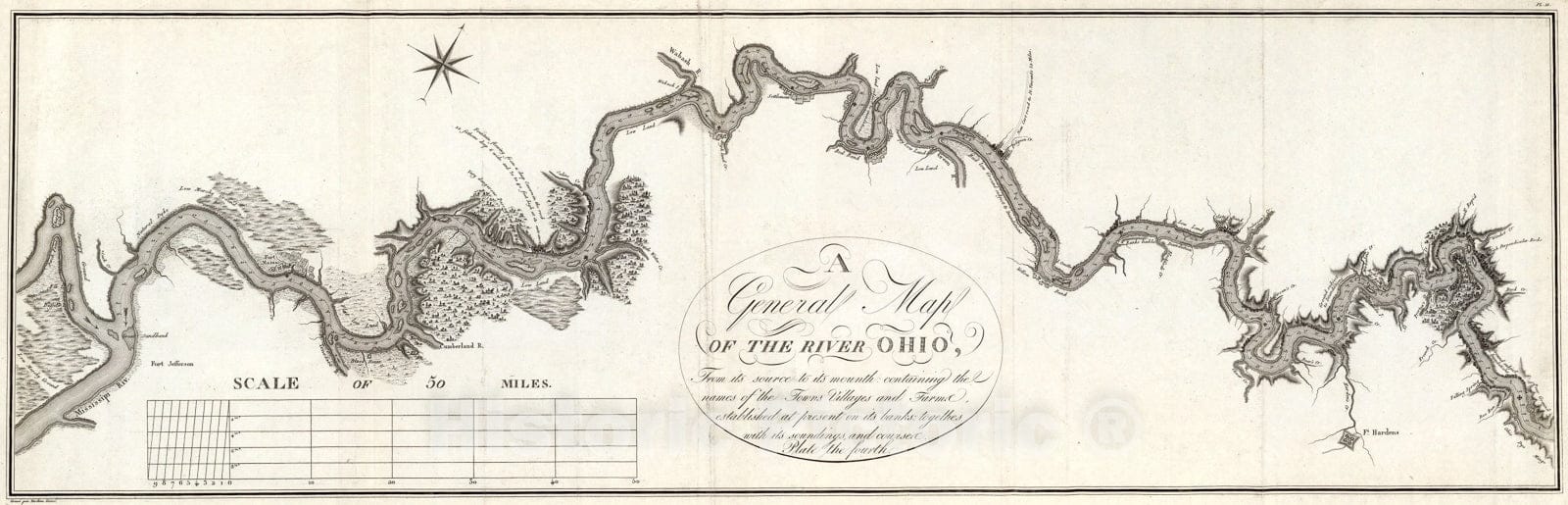 A General Map Of The River Ohio, From its source to its mounth (sic)., 1796, Vintage Wall Art