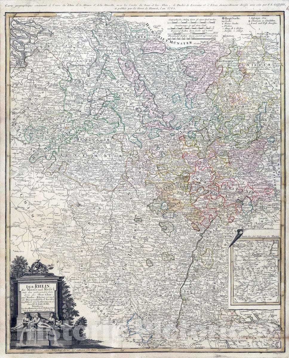 Historic Map : Germany, Rhine River 1783 Der Rhein, Mass und Mosel. , Vintage Wall Art