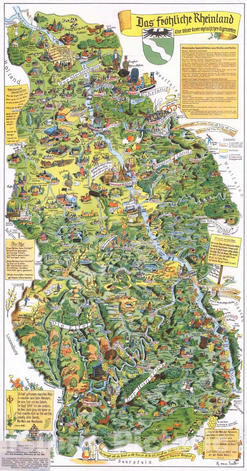 Historic Map : Germany, Rhine River 1930 Das froehliche Rheinland. , Vintage Wall Art