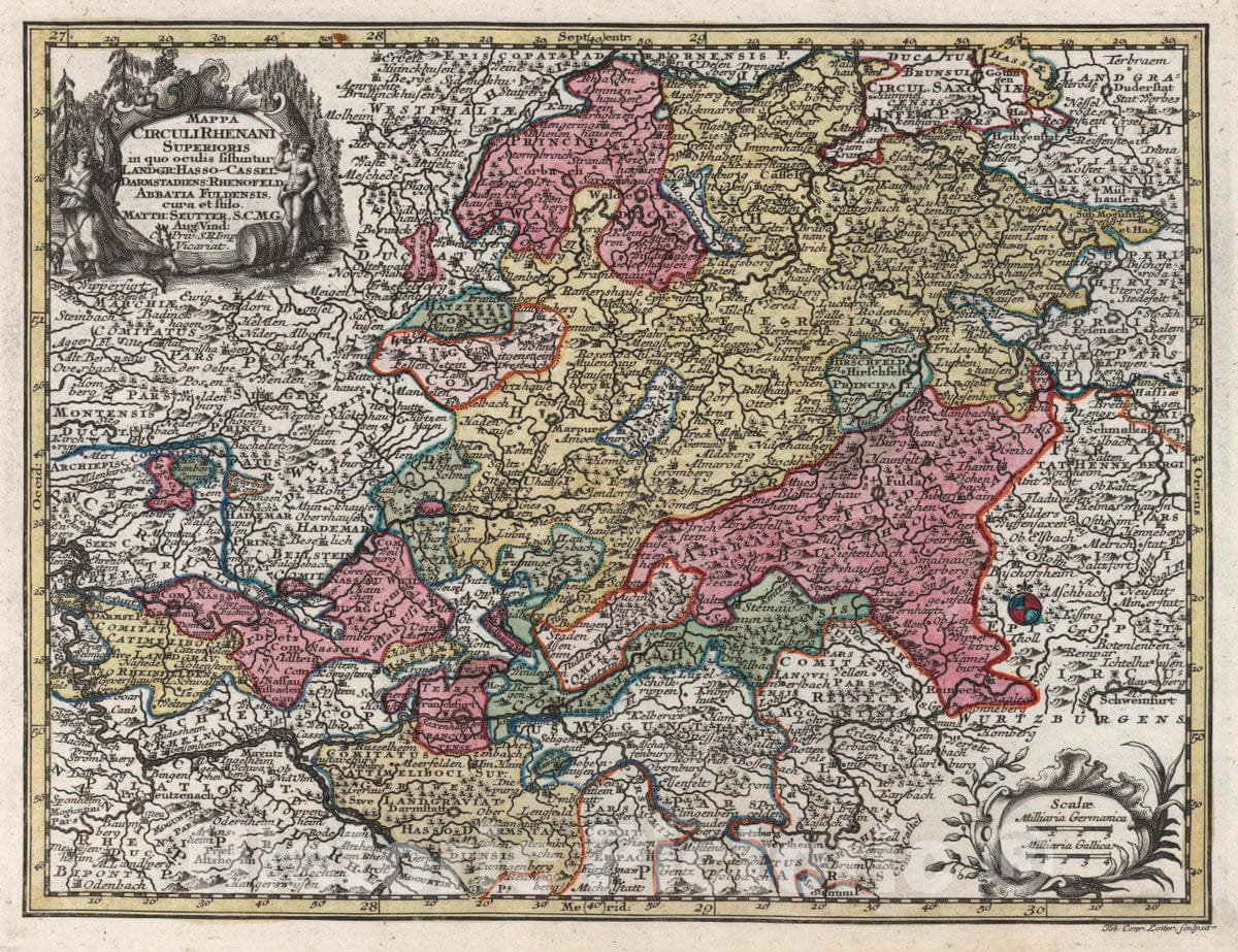 • .Historic Map : Germany, Rhine River Valley Mappa Circuli Rhenani Superioris, 1744 Atlas , Vintage Wall Art