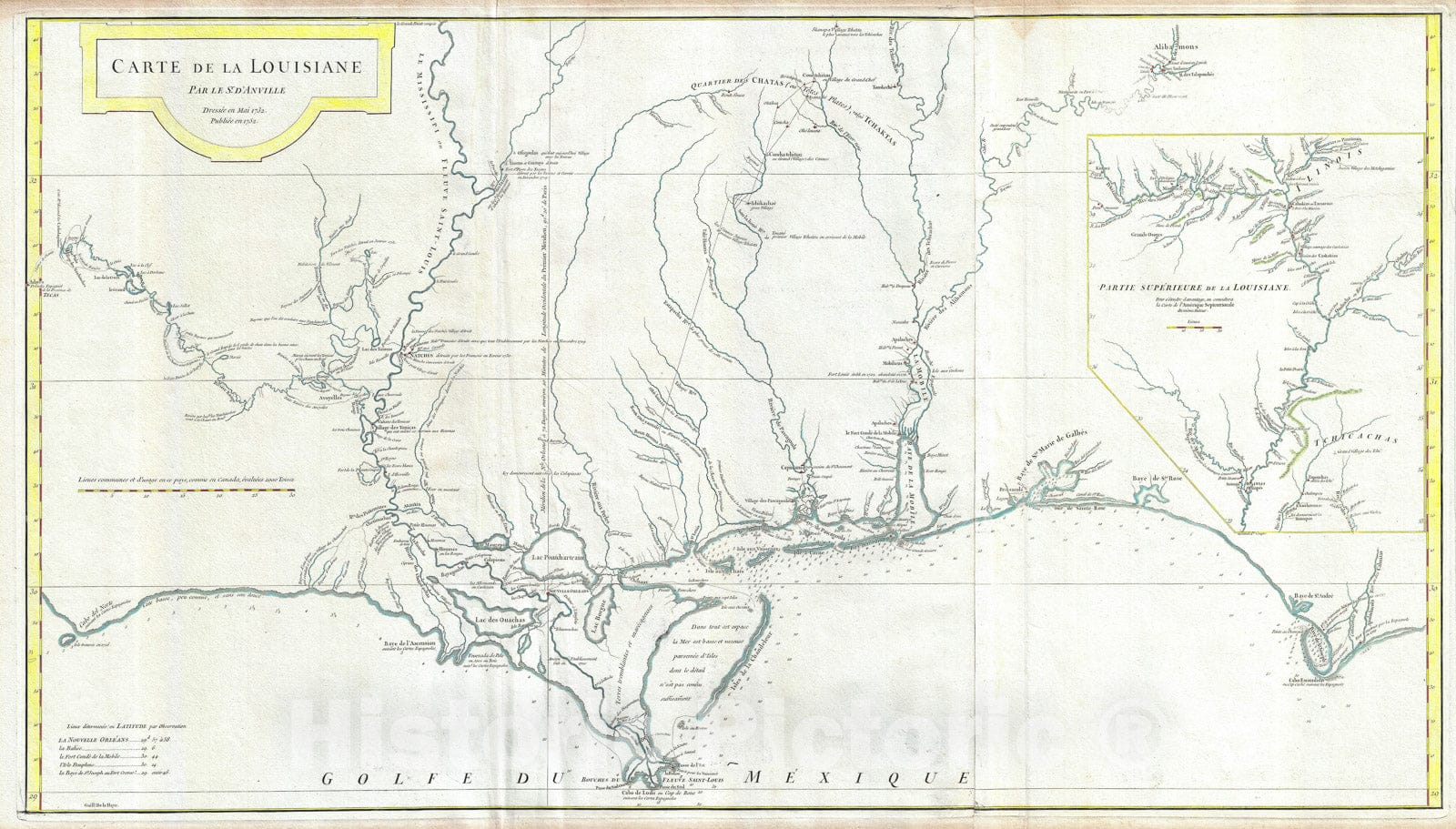 Historic Map : The Gulf Coast and Mississippi River Delta, Anville, 1752, Vintage Wall Art