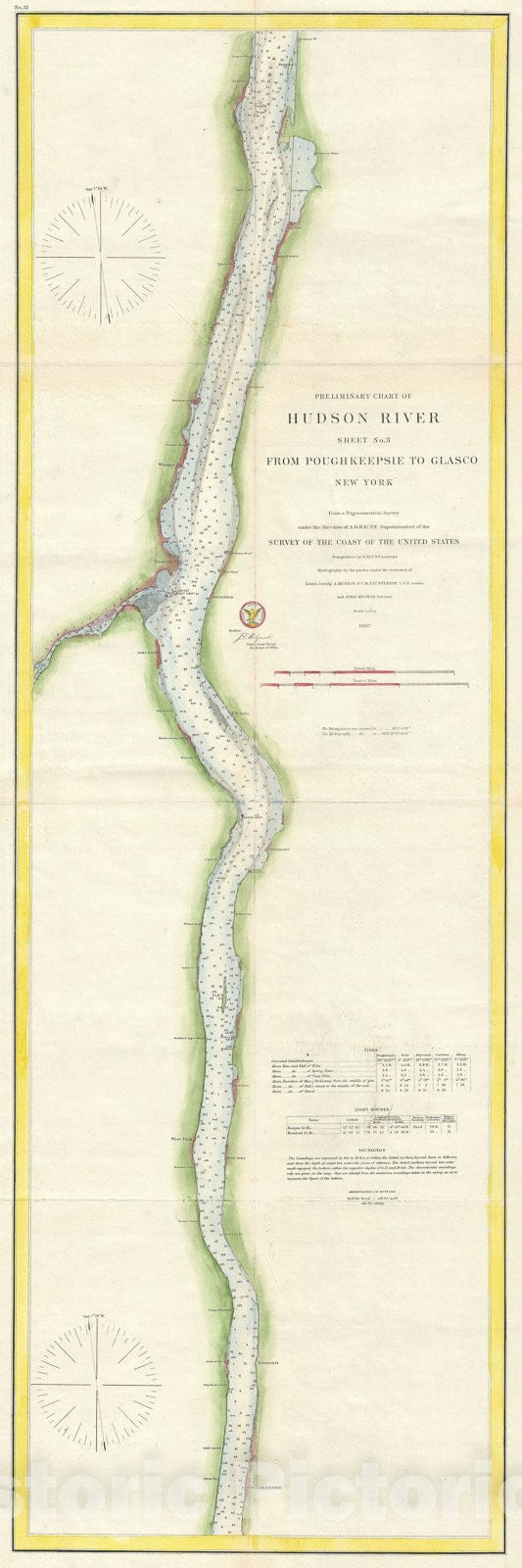Historic Map : Nautical Chart Hudson River, New York, U.S. Coast Survey, 1862, Vintage Wall Art