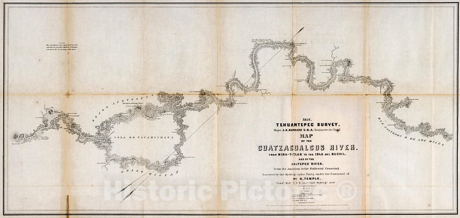 Historic Map : No.5. Map of the Coatzacoalcos River from Mina-titlan to the Isla del Suchil, 1852, Vintage Wall Decor