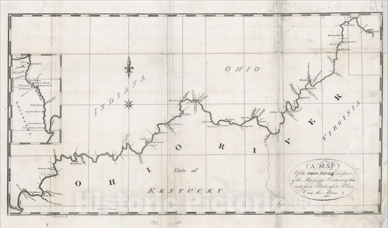Historic Map : A Map of the Ohio River and part of the Mississippi, Containing the route from Pittsburg to S. Louis, and the Mines, 1810, Peter Maverick, Vintage Wall Art