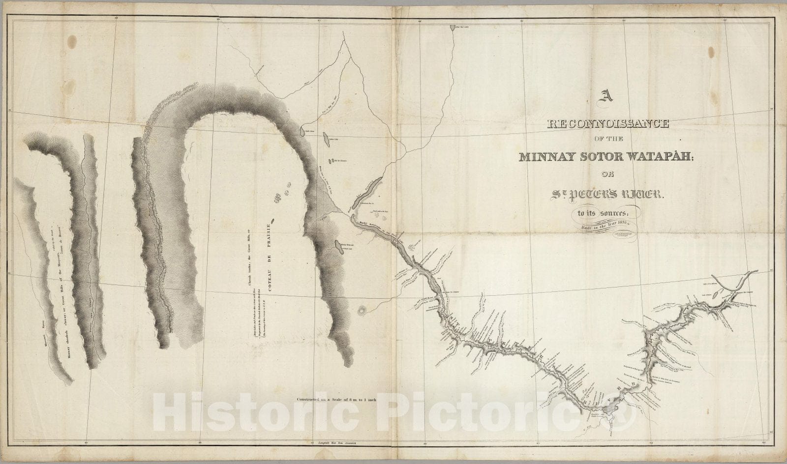 Historic Map : A Reconnoissance Of The Minnay Sotor Watapah = St. Peter's River to its sources, 1835, Vintage Wall Decor