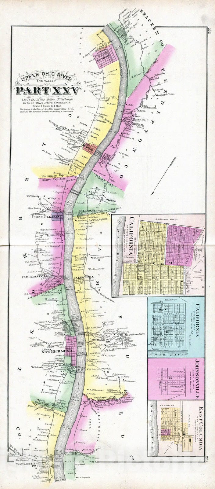 Historic Map : Regional - 1877 Upper Ohio River and Valley part XXV, below Pittsburgh, (with) California, Johnsonville, East Columbia, Ohio; California, Ky