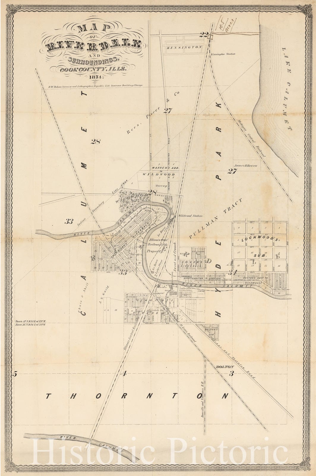 Historic Map - Map of Riverdale and Surroundings Cook County, Ills, 1874, R. W. Dobson - Vintage Wall Art