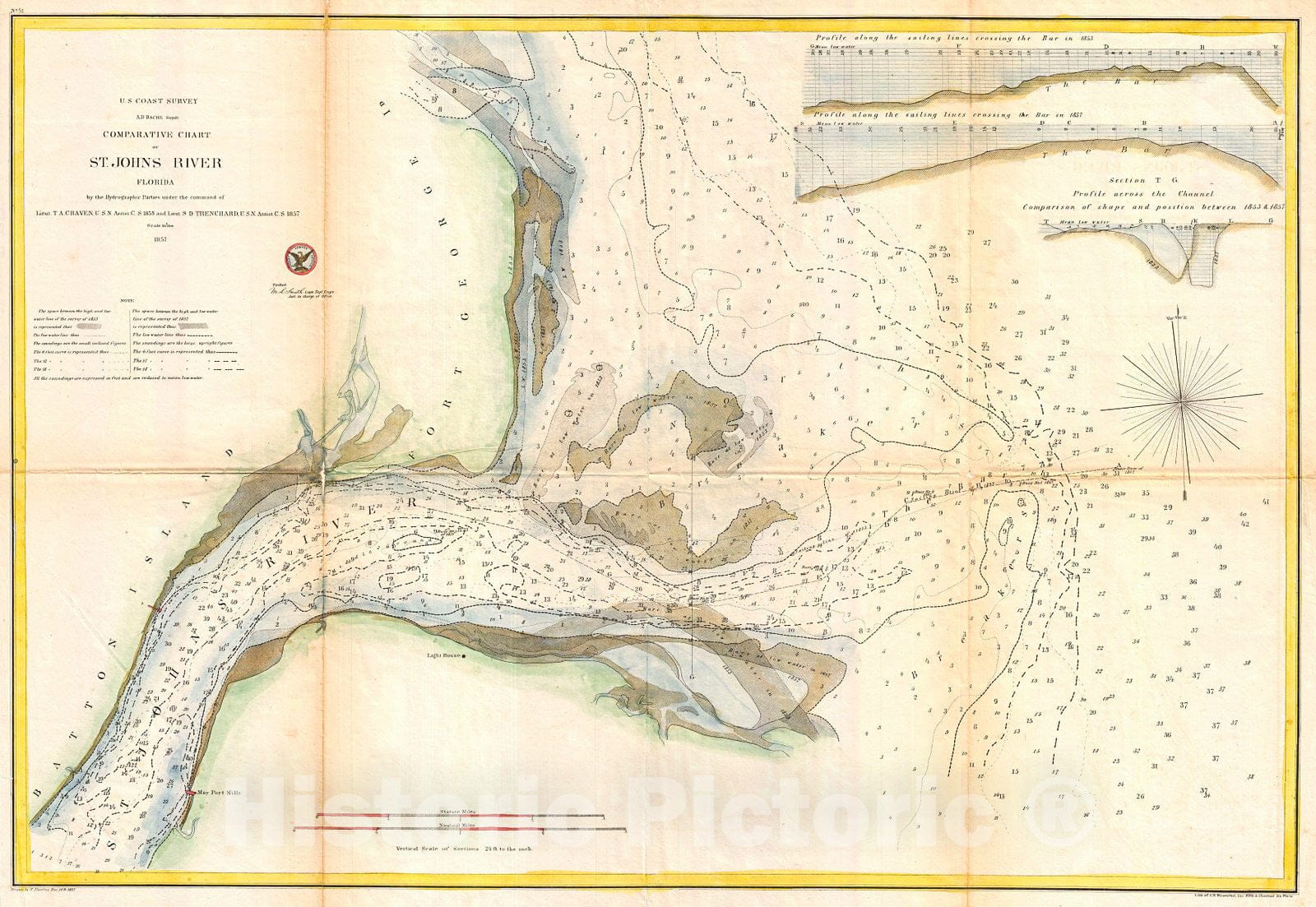 Historic Map : U.S. Coast Survey Map or Chart of The Mouth of St. Johns River, Florida, 1857, Vintage Wall Art