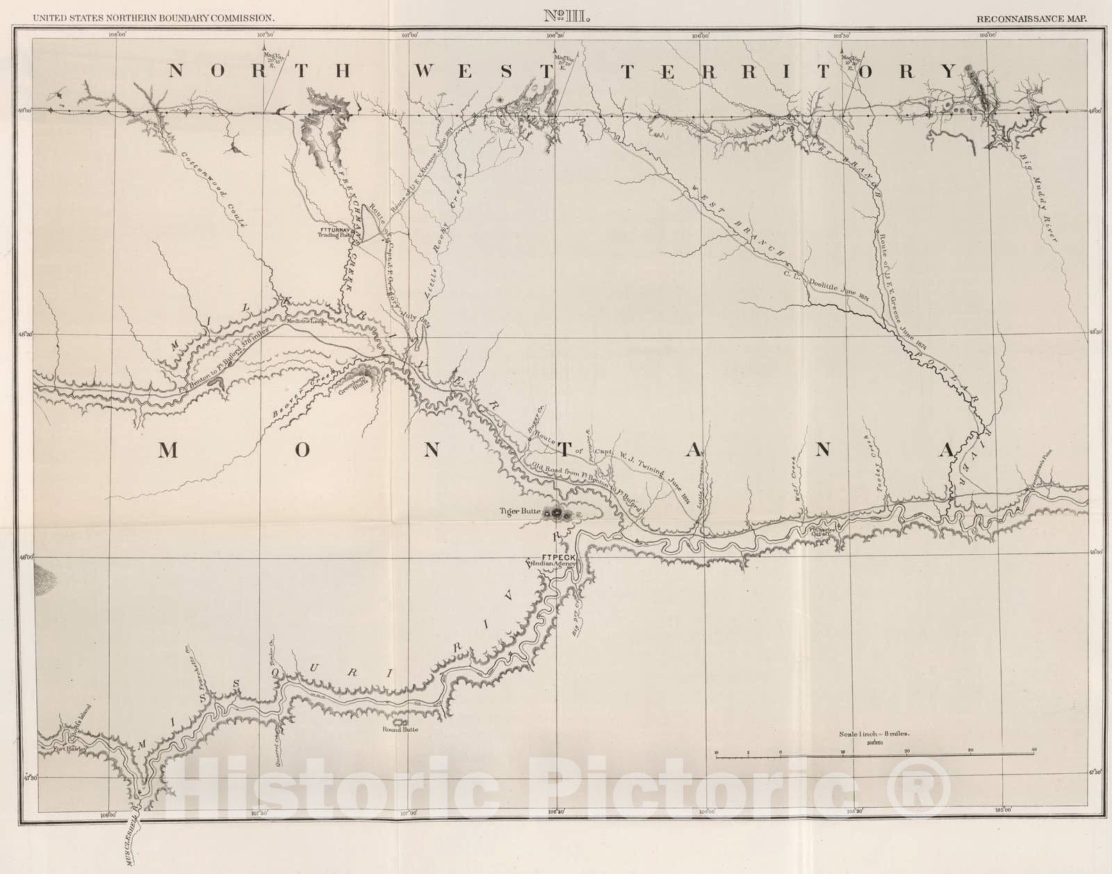 Historic Wall Map : Exploration Book - 1878 No. III, Reconnaissance Map. (Big Muddy River to Fort Hawley).