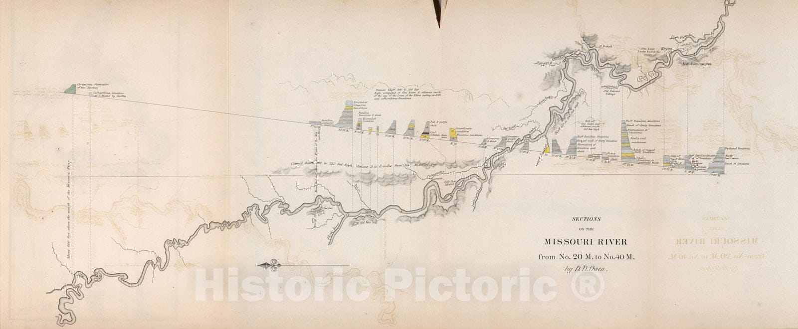 Historic Wall Map : Geography Book, Sections on the Missouri River, from No. 20 M, to No. 40 M. 1852 - Vintage Wall Art